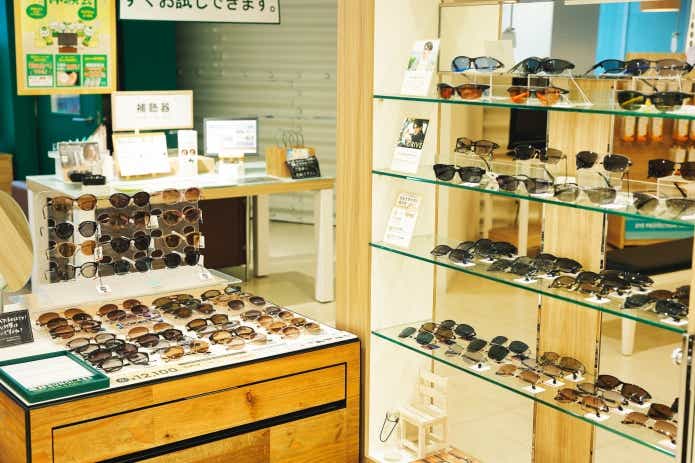 メガネのイメージが先行する同店舗(眼鏡市場)ですが、じつはサングラスも幅広く取り揃えています。