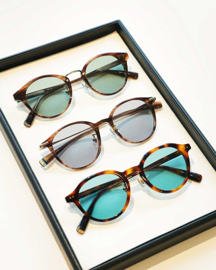 それぞれに選んだ似合うフレームに、自分好みの偏光レンズを組み合わせた、セミオーダー品が完成。