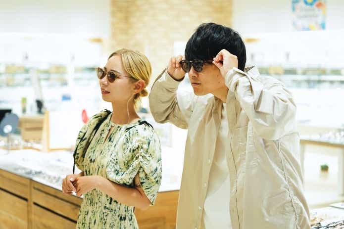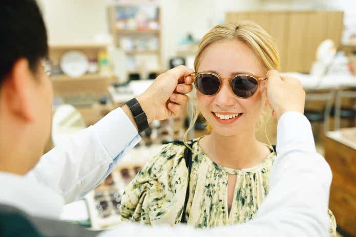 眼鏡市場では掛ける人の顔に合わせ、サングラスを調整してくれます。
