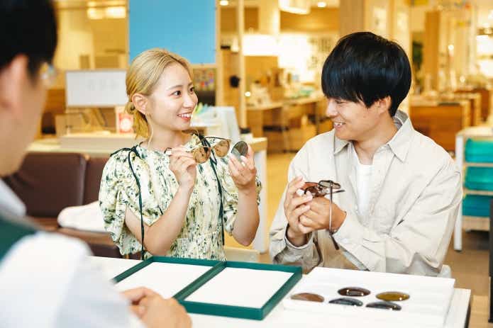 二つの診断結果と、掛ける人の好みも考慮しながら、スタッフがサングラス選びをお手伝い。