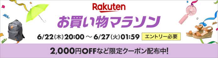 2023年6月22日(木)20時〜6月27日(火)1時59分まで、楽天市場にて買えば買うほどポイントが貯まる『お買い物マラソン』を開催中です。