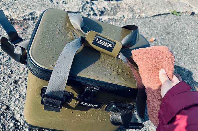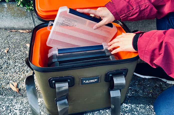 分厚い断熱材が中の釣具を守ってくれる役割も果たしてくれるので、乱雑に入れても不安なしです。