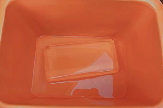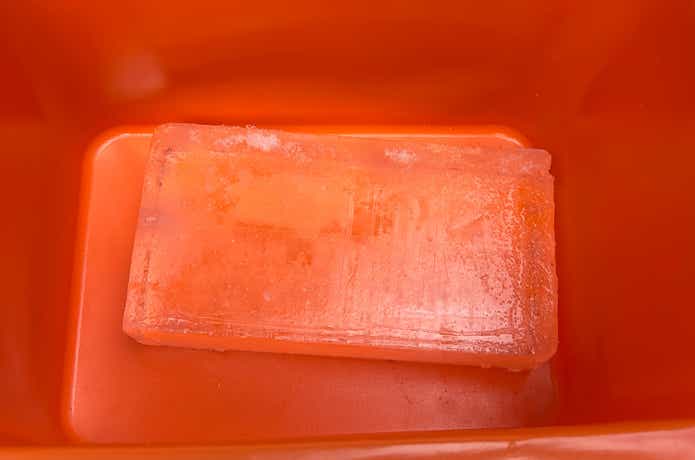 フリッジボックスに板氷1枚(1.7kg)のみを入れて、一定時間ごとに溶け具合をチェックしていきます。