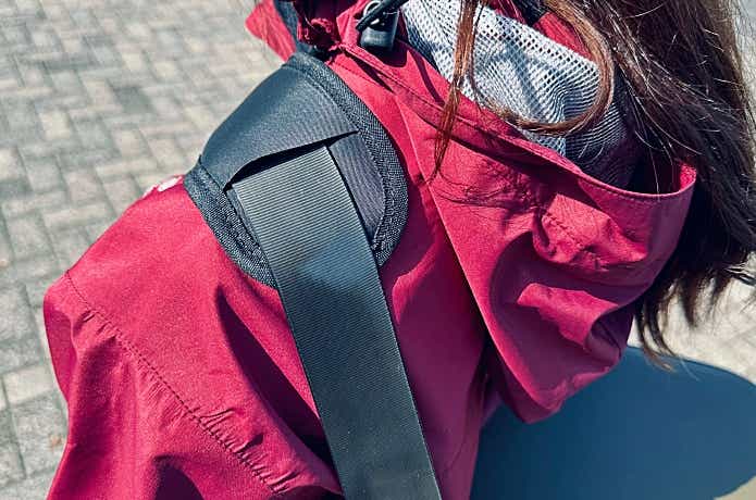 ショルダーベルトには滑り止め付きのクッションパッドが装着されていて、肩への負担も和らげてくれますよ。