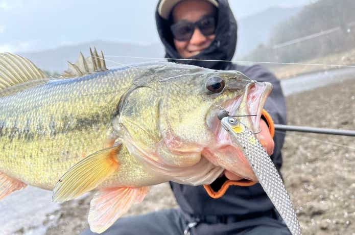 そこで、強めのロールから、ワームのテールだけが振動するくらいのイメージの弱めのロールにシフトチェンジ。すると一発でヒットに至ったのです。