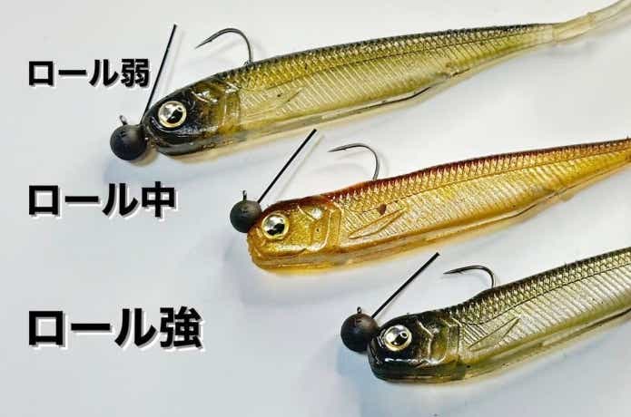 ちなみに、ワームの上側面にジグヘッドをセットすると、ジグヘッドが倒れ込もうとするのでロールはとてもやりやすくなります。
