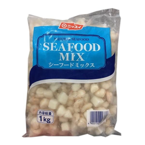 国内でも有名な食品メーカーのひとつ、ニッスイのシーフードミックス。えび、いか、いたや貝が入っており、食塩とアミノ酸で味付けされた冷凍食品です。