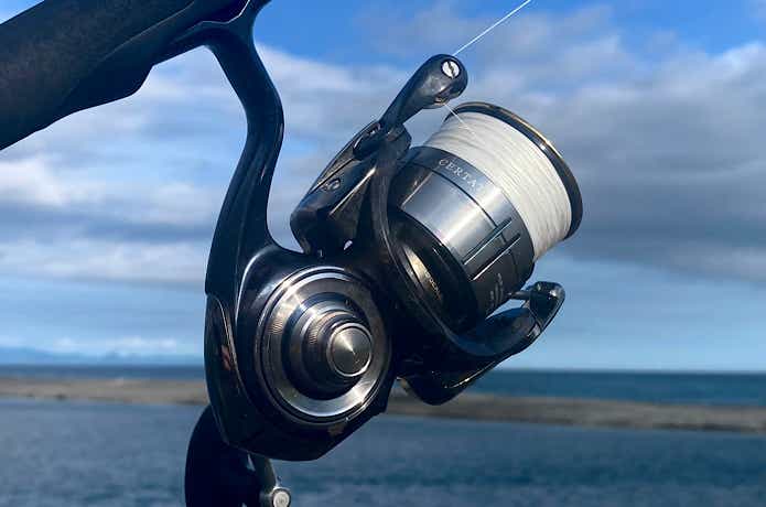リールはヴァンキッシュ3000MHGやセルテート3000XHなど、1.2号を150mストックできるものを使用していますが、実際にシーバスPEパワーゲームの1号を巻いてみると、本来はスプールが余ってしまうはずなのにピッタリ巻けてしまうんです。