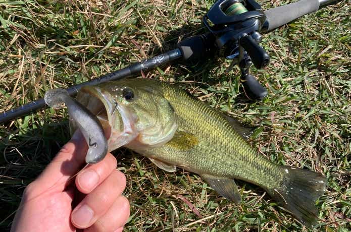 バックスライドはとくに夏の野池とは相性抜群で、20本ぐらい釣れた日も! (ただしサイズは選べません)