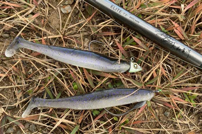 その一方、オープンな場所に投げてもそこそこ魚を集められるので、まぁ使い勝手の良いシャッドテールですね。