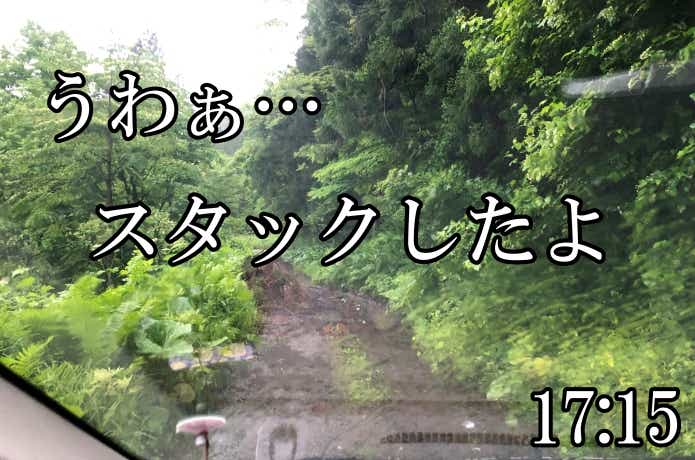 家族に「18時までには電波圏内に戻る」と伝えていながら、帰りの林道(圏外)で車がスタックしてしまい、脱出するのに時間が掛かったことがありました。
