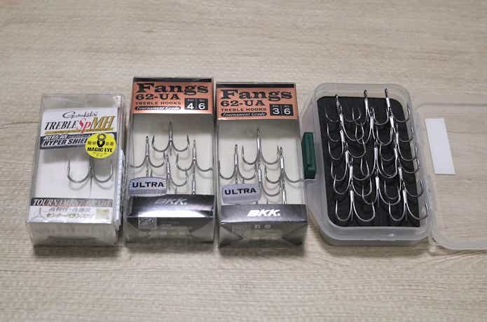 替えフックは1パック5〜6本入り程度ですが、ということは1パックに対してルアー3つ分のフックしか携行できないということです。