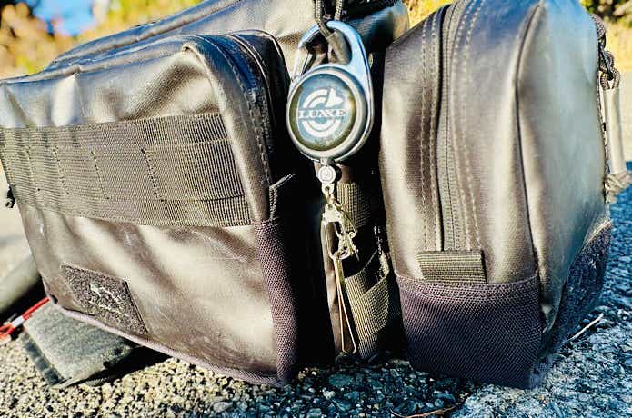 私はラインカッターとスナップを付けておかっぱりバッグに取り付けています。