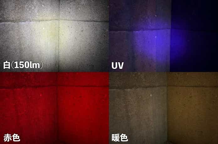 白(最大270lm)・暖色・赤・UVの4色を搭載しており、用途に応じた使い分けが可能。