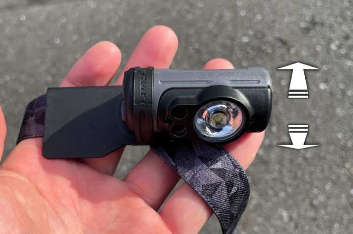 このヘッドライトは60lm/150lm/400lmと3段階の白色灯を選べるので、使いどころに合わせて節電したり、一気に明るくしたりという使い方が可能です。