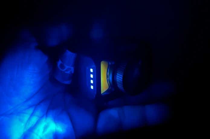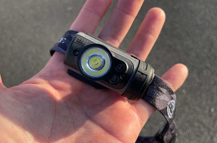 このヘッドライトの凄いところは、電池込みで約94gという軽さながらも【400lm(ルーメン)という明るさ、白・赤・暖色という3色の点灯モード、フォーカス機能、電池残量の確認など】ヘッドライトとしての性能が揃っていることです。