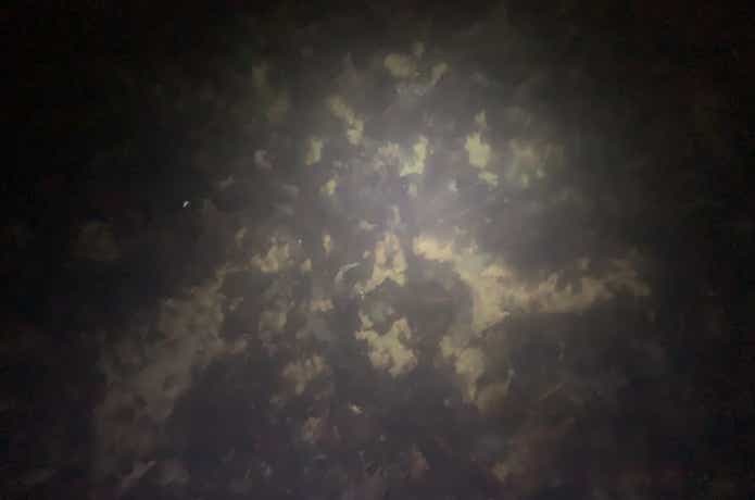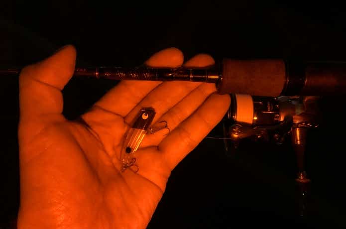 実際に蓄光してみるとこの通り。しっかりとルアーが光っているのがわかりますよね。