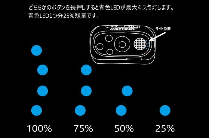 ※電池残量と共に光量はゆるやかに落ちていきます。