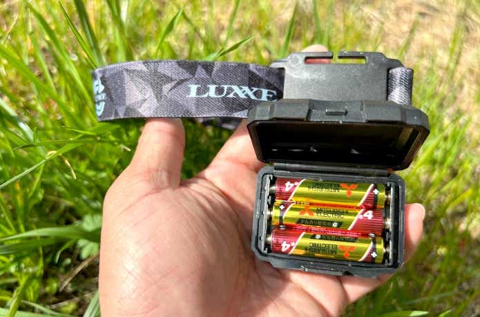 電源に目を向けると、ヘッドライトは乾電池式、充電式、双方使用できるハイブリッド式の大体3種類に分けられますが、こちらは乾電池式です。