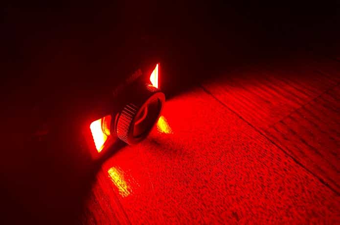 また、赤のLEDが最大100lmと明るく、移動時に赤色を使いたいという方にも最適。