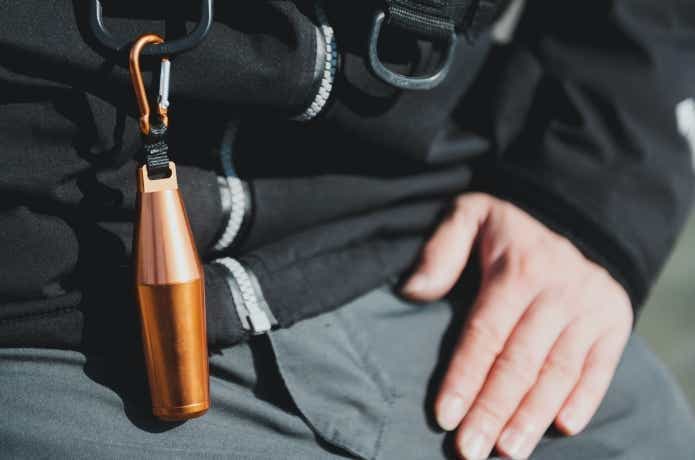 わずか1.9cmの薄さでポケットに収まりやすく、カラビナ付きで携行性も抜群です。