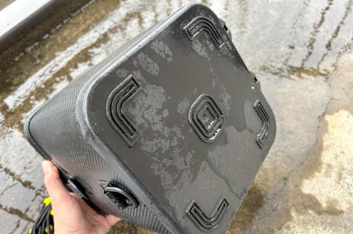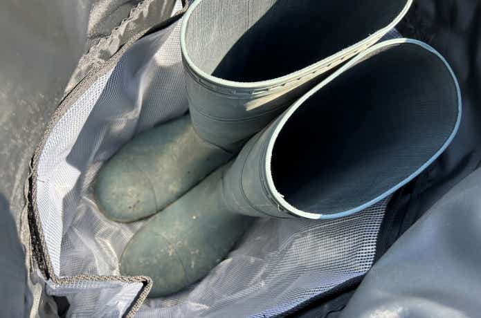 インナーだけ外して洗えるので、釣行後の長靴やウェーダーといった汚れ物も気兼ねなく入れられるわけです。