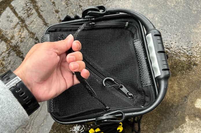 ロッドホルダー、Dカン、メッシュ、2つのファスナーを繋ぐ引手……。