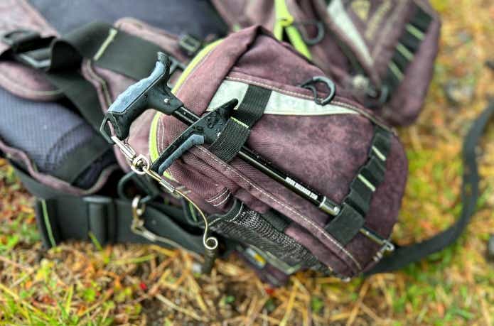 写真のようにゲームベストに差し込むと、先端のフックが何かと引っかかりそうで気になるので、フックリリーサーホルダーと合わせて購入すると良いと思います。