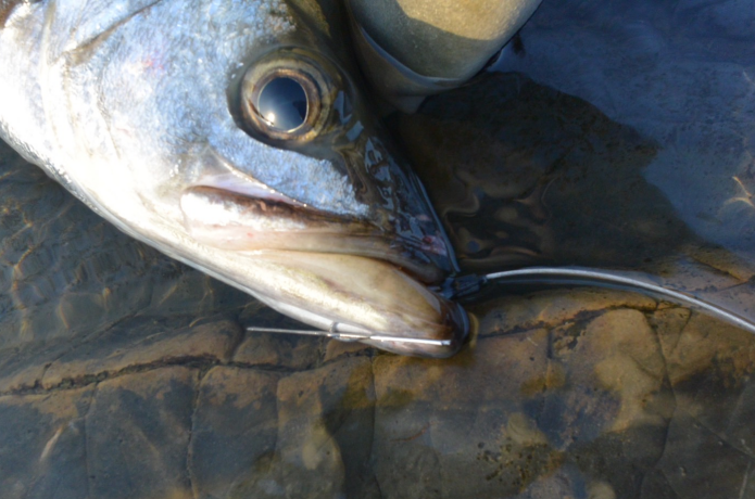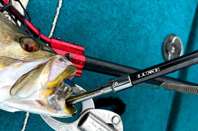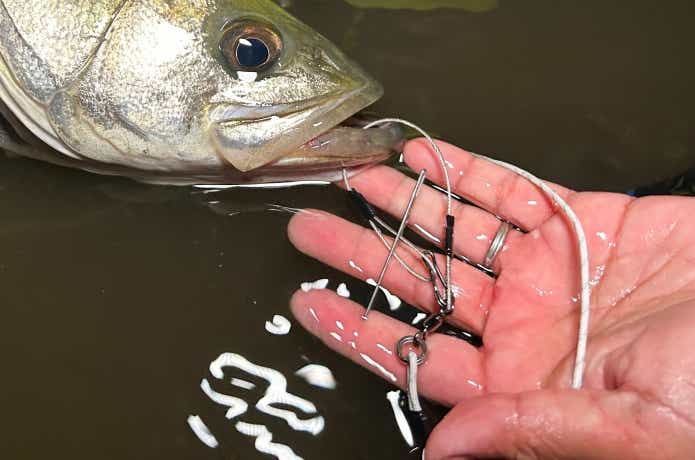 小型のシーバスでも、「リリーサーの陰になってフックが見えにくい」といったことがなく、操作しやすかったですよ。