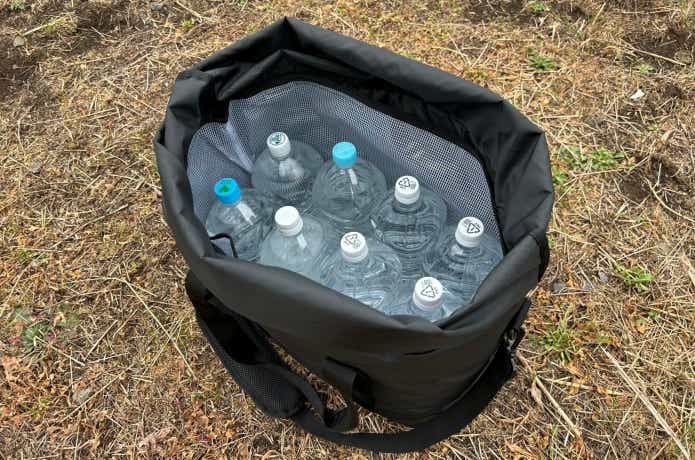 試しに2Lペットボトルを8本入れてみるとこんな感じ。