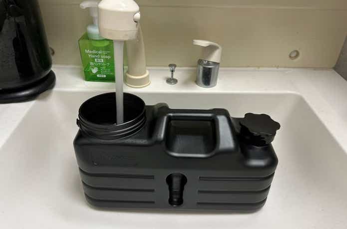 今までは10Lのタンクを使用していたので風呂場で水をためていましたが、洗面台でできるようになりました。