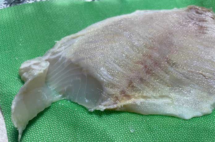 キッチンペーパーと同様、水がかなり吸収されており、身の表面が少し乾いています。