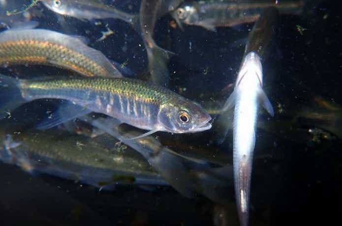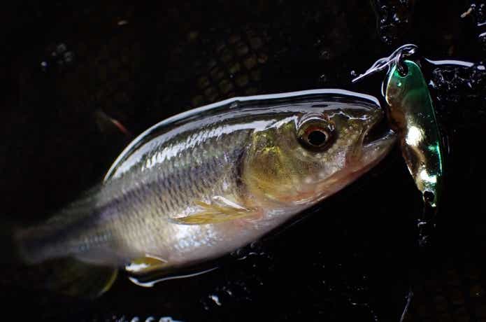 チャビングのおもな対象魚は、どこにでもいる淡水魚、オイカワやカワムツ、ウグイなどの小魚たちです。