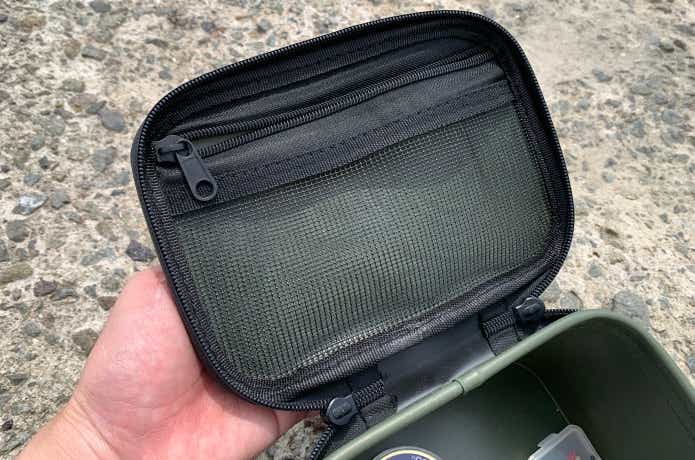 筆者の場合、メッシュポケットには使用頻度の低いリーダーやスナップ、ノッター等をしまっています。