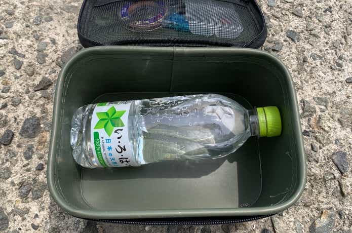 ハンドルが付いていて、500mlのペットボトルが入るということは、この箱1個だけを持って釣行できるということ!