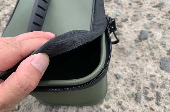 フタとファスナーがバッカン仕様なので、雨に強く、浸水しにくい(ほぼしない)ことも利点。