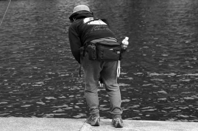 要するに、移動時は手に持って、釣りをする時は足元に置いておくスタイルの方が快適だったというわけです。