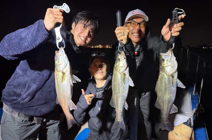 こうした気づきは、釣りが上達するうえでとても大切。釣れている人に直接「どうやったら釣れましたか?」と聞けるのも、少人数で乗るボートシーバスならではのメリットです。