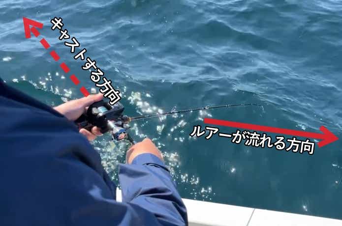 また、ドテラ流しの場合、自分の真下にルアーが入ってしまうような流れの場合、逆舷の人のラインと絡む可能性があります。そんな時は、自分の正面に向かって軽く投げることでトラブルを避けやすくなります。