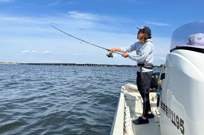 重要なのは、ロッドのバット部分からしっかり曲げてパワーを溜めること。そして、腰の回転を使ってスムーズに振り抜くことです。
