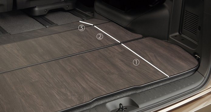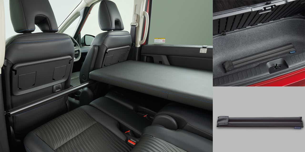 また、前方のベッドフレームは着脱式で、未使用時には分割してラゲッジ下の収納に収められます。
