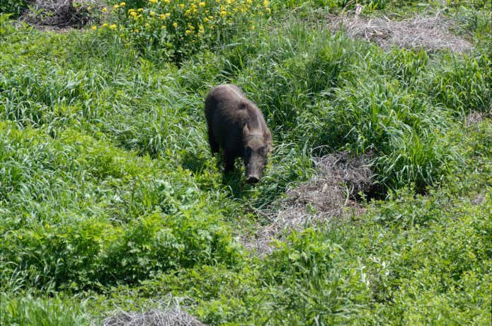 川釣りはもちろん、地磯へのエントリー中にも遭遇する可能性があるのがイノシシです。万が一攻撃を受けた場合、致命的な怪我につながることもあります。