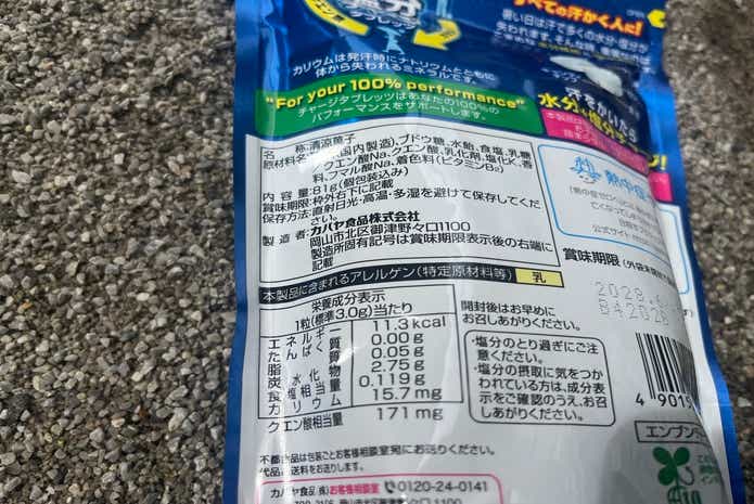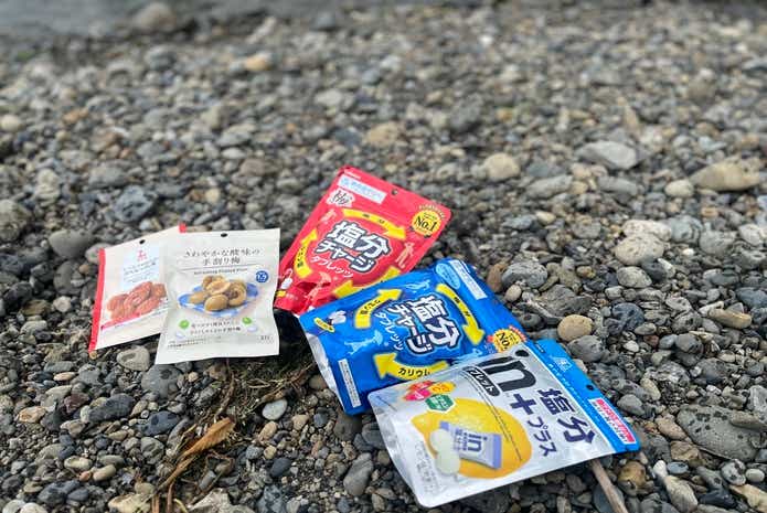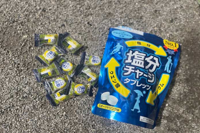 また、製品によっては甘味が強く、糖分の摂りすぎになることもあります。爽やかな甘味でおいしい塩タブレットもあるのですが、バクバクと過剰摂取しないように注意が必要です。