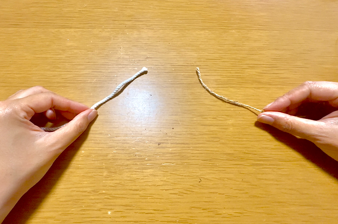 結束部を唾液などで濡らしてから締めると固く締まりますよ!