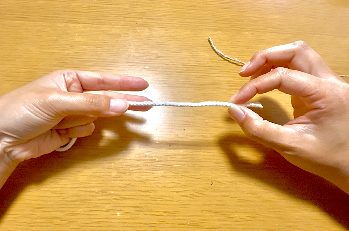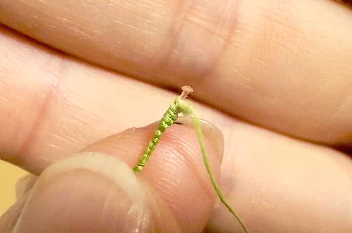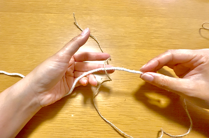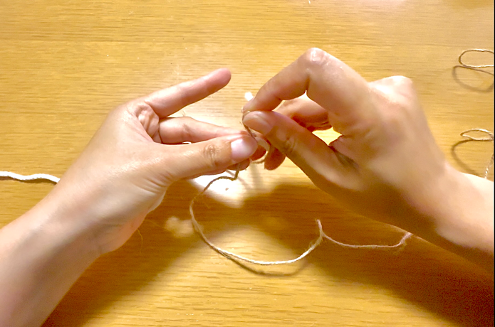 この工程は結び目をいかに詰めて押さえられるかが大事です!