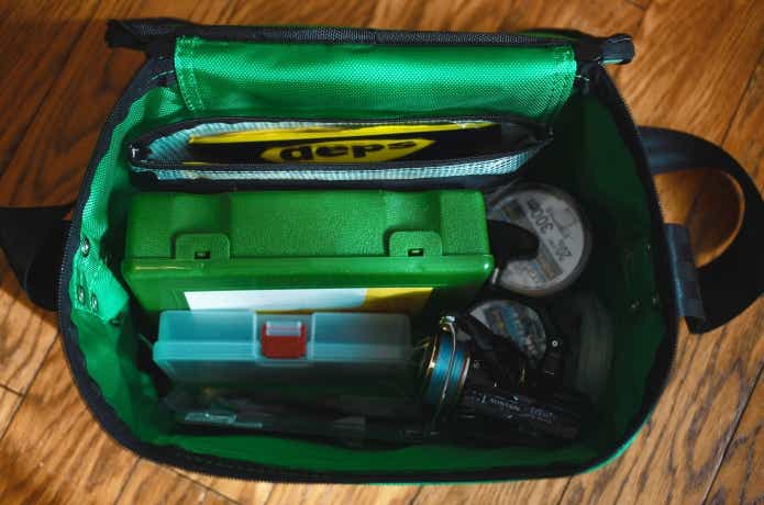 私自身はそれほど重いものを入れているわけではなく、釣行に必要な小物をざっくり詰め込んで使っています。