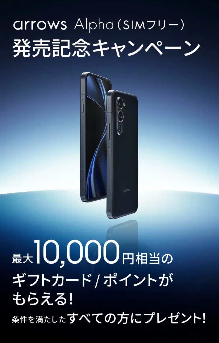 概要:対象期間中にarrows Alpha(SIMフリー)をご購入&ご応募でAmazonギフトカード5,000円分をプレゼント。