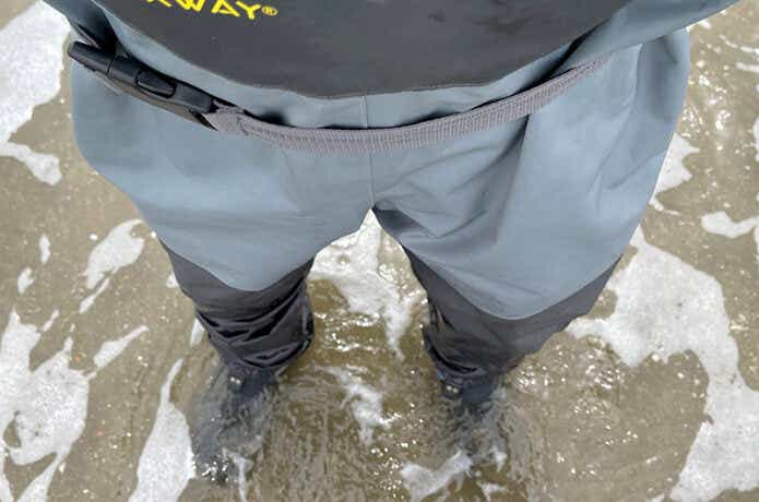 ストッキングウェーダーを着て、シューズだけを履き替えるスタイルです。