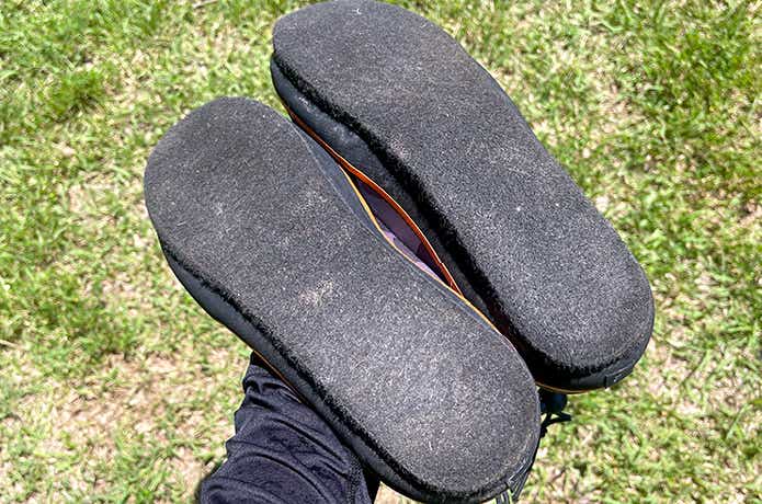とはいえ、フェルトソールは10mm厚で、つま先とかかとは補強されているため、大きな不安はありません。
