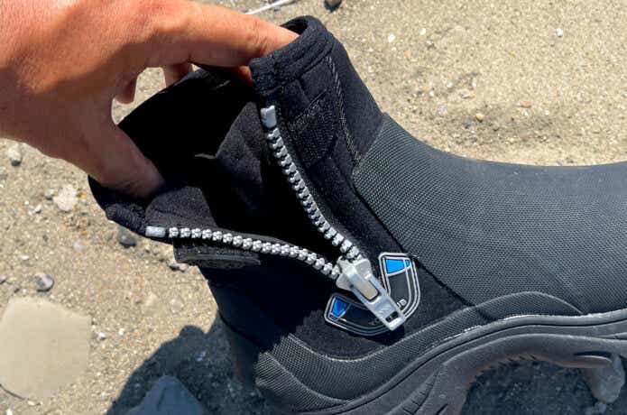 足首までしっかりホールドされますが、ネオプレーン素材のため伸縮性があり、歩きやすさも確保されています。